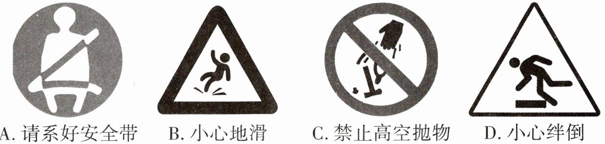 1. 安全是生命和健康的基本保障。如图是一些安全警示标志,其中不能应用惯性知识解释的是()