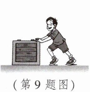 9. 如图所示,重力为100N的木箱放在水平地面上,某同学用20N的力水平向左推木箱,没有推动,木箱受到地面的摩擦力为______N,方向是______。该同学在推木箱时,觉得木箱也在推他,说明______。