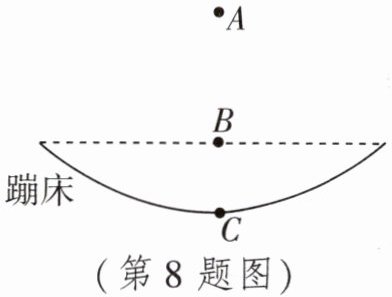 8. 如图是蹦床运动员比赛时从最低点C竖直上升至最高点A的简化图。运动员在重力作用下减速上升说明力是______物体运动状态的原因;若运动员上升到最高点时,重力突然消失,运动员将处于______状态。