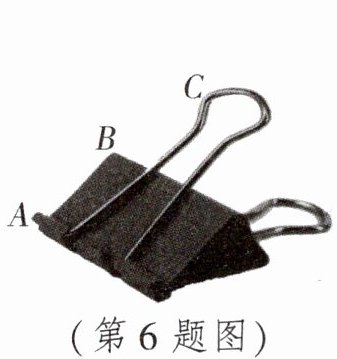 6. 如图是同学们常用的燕尾夹,当用力按住$C$点打开该夹子口时,可把______点看作支点,动力的作用点为______点,阻力的作用点为______点。(均选填“$A$”“$B$”或“$C$”)
