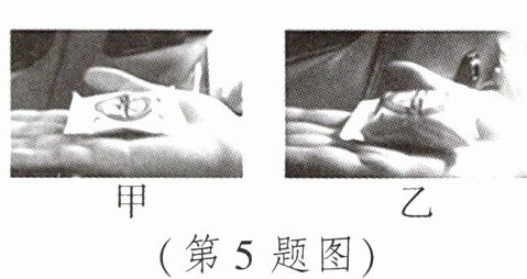 5. 暑假期间,苗苗和家人乘车去青藏高原旅行。如图是苗苗在出发前(出发地海拔为 479 m)和到达后(青藏高原此处海拔为 4100 m)拍摄的同一包零食袋(密封完好)的图片,拍摄时两地温度基本相同。其中图____(选填“甲”或“乙”)是在出发地中拍摄的。