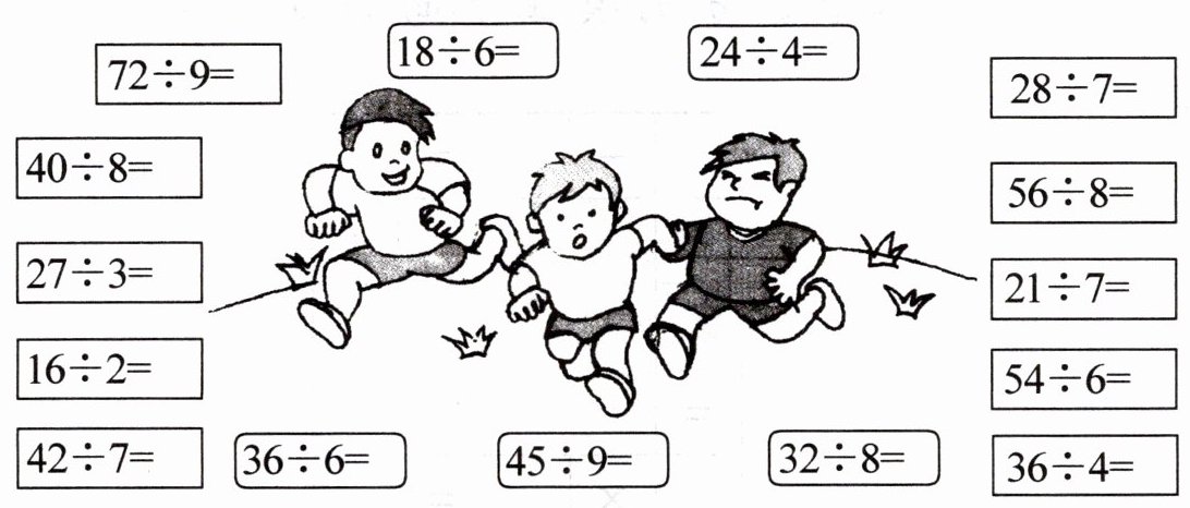 $72÷9 = 8$;$18÷6 = 3$;$24÷4 = 6$;$28÷7 = 4$;$40÷8 = 5$;$56÷8 = 7$;$27÷3 = 9$;$21÷7 = 3$;$16÷2 = 8$;$54÷6 = 9$;$42÷7 = 6$;$36÷6 = 6$;$45÷9 = 5$;$32÷8 = 4$;$36÷4 = 9$。