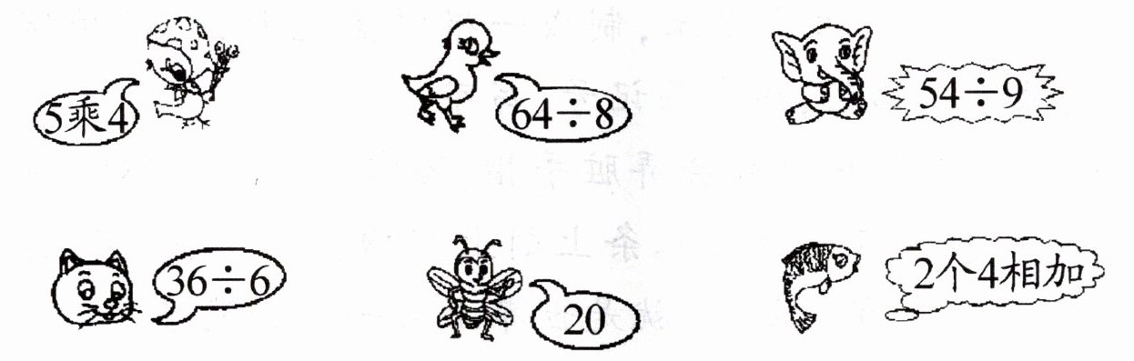 “$5$乘$4$”——“$20$”;“$2$个$4$相加”——“$64\div8$”。