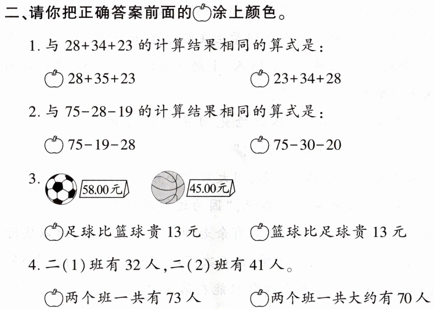 3. 足球比篮球贵$13$元前面的涂色。