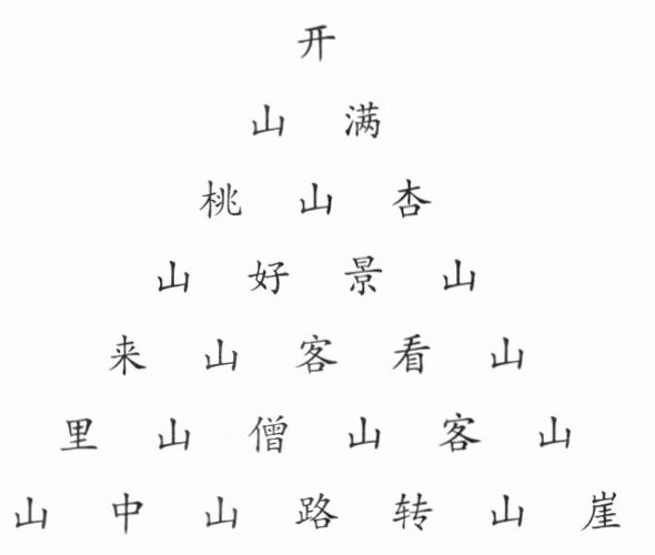 山中山路转山崖,山客山僧山里来。山客看山山景好,山桃山杏满山开。