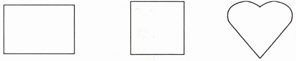 按照上述对周长和面积的理解,用蓝色笔描出各图形一周(长方形和正方形描四条边,心形描轮廓),用红色笔涂满各图形内部区域。