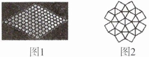 3. 相信很多人家里都有“巧手妈妈”,图1是一位巧手妈妈手工织的坐垫,图2是某学校操场铺的地砖. 它们或是用单独的正多边形,或是用多种正多边形混合拼接成的,拼成的图案严丝合缝,不留空隙. 从数学角度看,这些作品就是用一些不重叠摆放的多边形把平面的一部分覆盖,通常把这类问题叫作用多边形覆盖平面(或平面镶嵌)的问题.