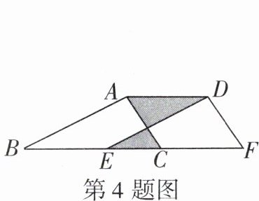 4. 如图,$ AB = 4 \mathrm{~cm} $,$ BC = 5 \mathrm{~cm} $,$ AC = 2 \mathrm{~cm} $,将 $ \triangle ABC $ 沿 $ BC $ 方向平移 $ a \mathrm{~cm}(0 < a < 5) $,得到 $ \triangle DEF $,连结 $ AD $,则阴影部分的周长为______ $ \mathrm{cm} $.