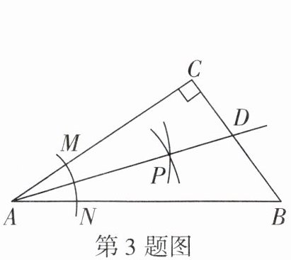 3. 如图,在 $ \triangle ABC $ 中,$ \angle C = 90^{\circ} $,以点 $ A $ 为圆心,适当长为半径画弧,分别交 $ AC $,$ AB $ 于点 $ M $,$ N $,再分别以点 $ M $,$ N $ 为圆心,大于 $ \frac{1}{2}MN $ 的长为半径画弧,两弧交于点 $ P $,作射线 $ AP $ 交 $ BC $ 于点 $ D $. 若 $ CD = \frac{5}{2} $,$ AB = 10 $,则 $ \triangle ABD $ 的面积是______.