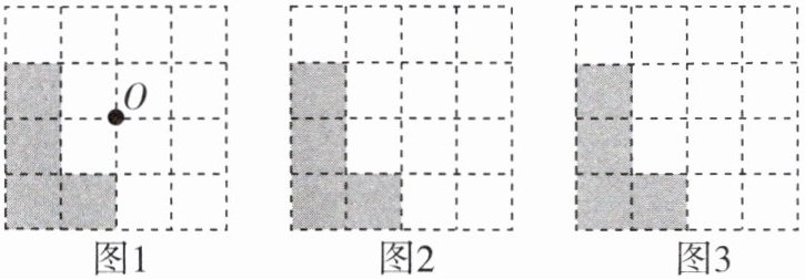 (1) 在图 1 中再涂黑 4 格,使新涂黑的图形与原来的“L 形”关于对称中心点 $ O $ 成中心对称.