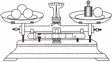 4. 如图,天平左边托盘上放着3个乒乓球,右边托盘上放着5g的砝码和1个乒乓球,天平恰好平衡.如果设1个乒