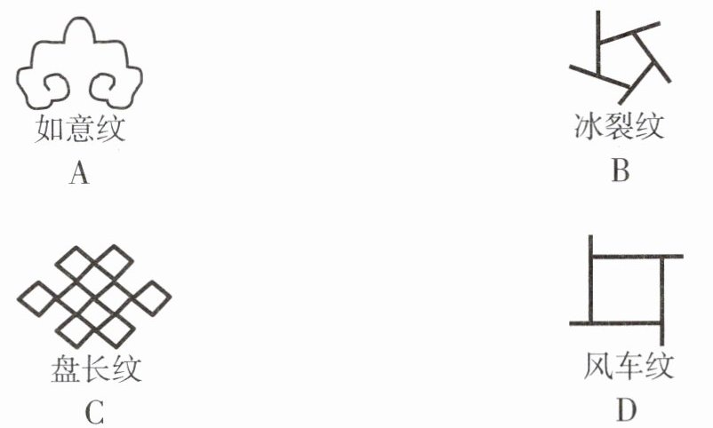2. 纹样作为中国传统文化的重要组成部分,是古人智慧与艺术的结晶.下面纹样的示意图中,是中心对称图形但不是轴对称图形的是()