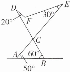 4. 如图是可调躺椅示意图(数据如图),$ AE $ 与 $ BD $ 的交点为 $ C $,且 $ \angle A,\angle B,\angle E $ 保持不变. 为了舒适,需调整 $ \angle D $ 的大小,使 $ \angle EFD = 110^{\circ} $,则图中 $ \angle D $ 应______(填“增加”或“减少”)______度.