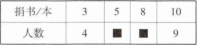 表中捐书5本和8本的人数不小心被墨水污染,已看不清楚,请你帮忙确定表中的数据,并说明理由。