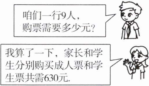 4. 五一期间,七年级若干名学生和家长一同去某景区游玩。请根据景区票价公示栏中的信息及两人的对话,解答下列问题: