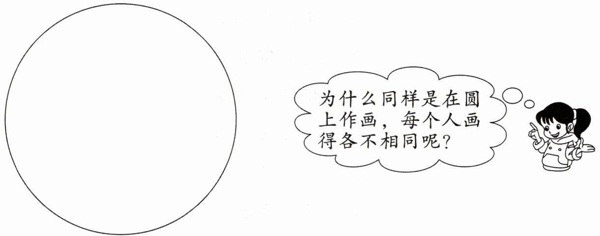 下面有一个圆,你会把它想象成什么? 把你的想象画出来,并涂上颜色吧。