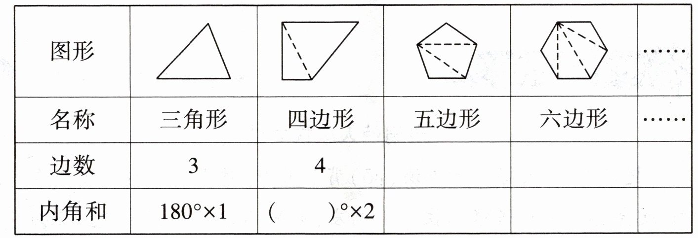 - 内角和:$180$、$180^{\circ}×3$、$180^{\circ}×4$