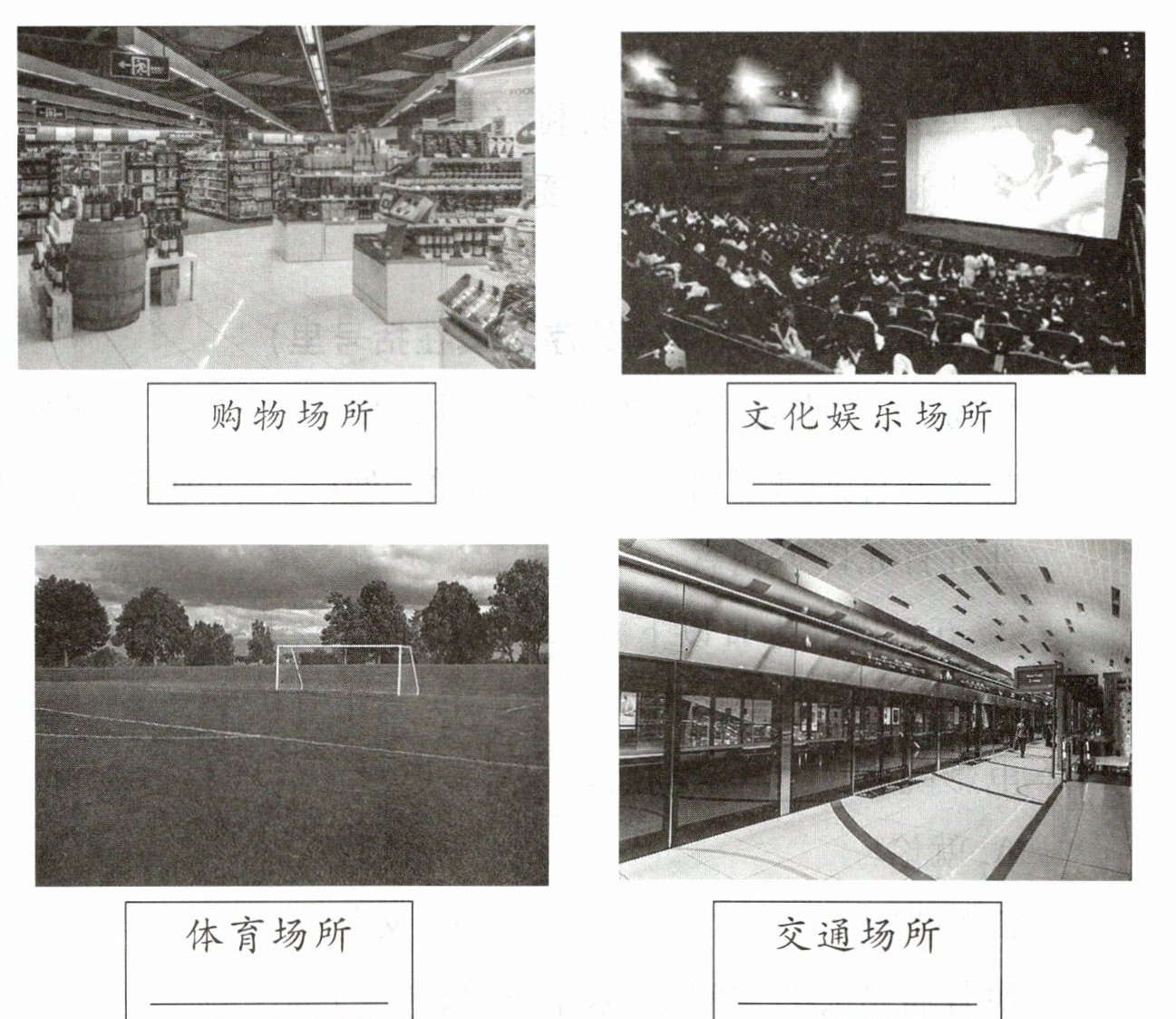 三、阅读图片,根据类别填入相应的公共场所名称。