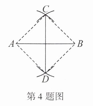 4. 如图,小明在作线段 $AB$ 的垂直平分线时,他是这样操作的:分别以 $A$ 和 $B$ 为圆心,以大于 $\frac{1}{2} A B$ 的长为半径画弧,两弧相交于 $C, D$, 则直线 $C D$ 即为所求. 根据他的作图方法可知四边形 $ADBC$ 一定是 ()
