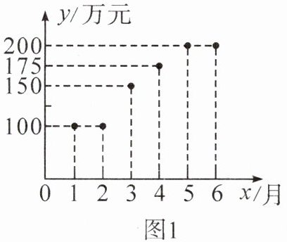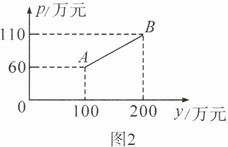 3. 某公司今年如果用原线下销售方式销售一种产品,每月的销售额可达100万元.由于该产品供不应求,该公司计划于3月份开始全部改为线上销售,这样,预计今年每月的销售额y(万元)与月份x(月)之间函数关系的图象如图1中的点状图所示(5月及以后每月的销售额都相同),而经销成本p(万元)与销售额y(万元)之间函数关系的图象如图2中线段AB所示.