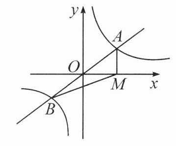 3. 如图,一次函数 $y = mx$ 与反比例函数 $y = \frac{k}{x}$ 的图象交于 $A,B$ 两点,过点 $A$ 作 $AM \perp x$ 轴,垂足为 $M$,连接 $BM$,若 $S_{\triangle ABM} = 3$,则 $k$ 的值是____.