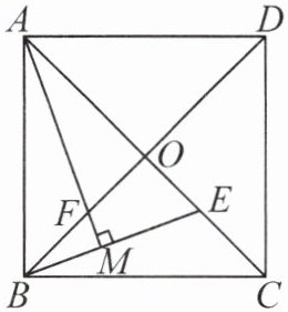 因为$AM\perp BE$,所以$\angle EBM+\angle BFM = 90^{\circ}$,又$\angle AFO=\angle BFM$,所以$\angle FAO=\angle EBO$。