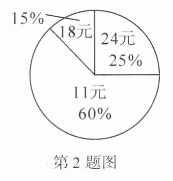 2. 某水果店销售$11$元、$18$元、$24$元三种价格的水果,根据水果店一个月这三种水果销售量的统计图(如图所示),可计算出该店当月销售出水果的平均价格是____元。