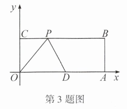 3. 如图,已知$O$为坐标原点,四边形$OABC$为矩形,$A(20,0)$,$C(0,8)$,点$D是OA$的中点,点$P在边BC$上运动,当$\triangle ODP是腰长为10$的等腰三角形时,则$P$点的坐标为____。