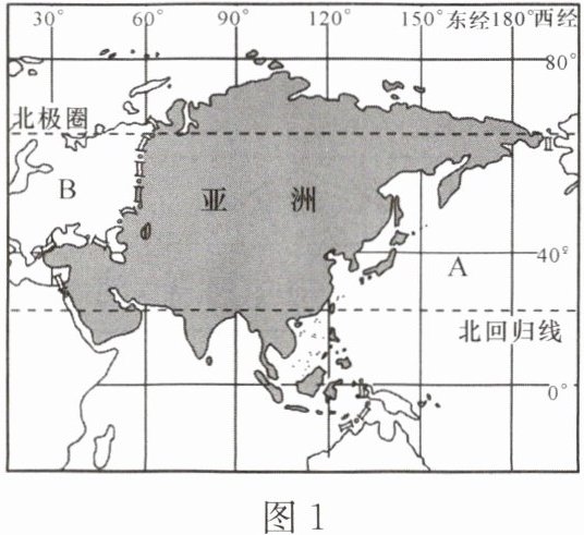 1. 亚洲面积广大,地跨东、西、南、北四个半球。从图中可见,它主要位于( )