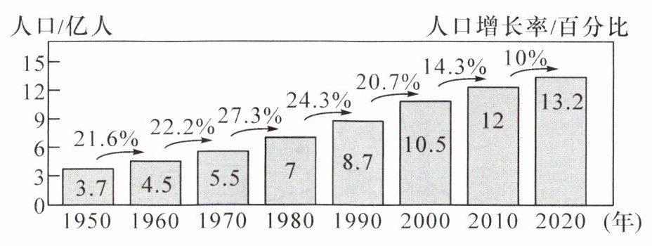 (4)读印度人口增长统计图,从人口数量、人口增长率两方面,描述印度人口变化的特点。