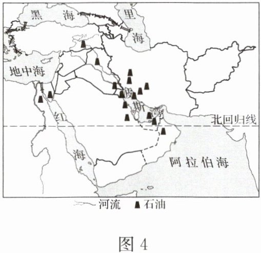 在西亚某国超市的货架上,一瓶普通一升装当地产的矿泉水价格约为10元人民币,该国一升95号汽油的价格不到4元人民币,真正的“水比油贵”。图4为西亚简图。完成9~10题。