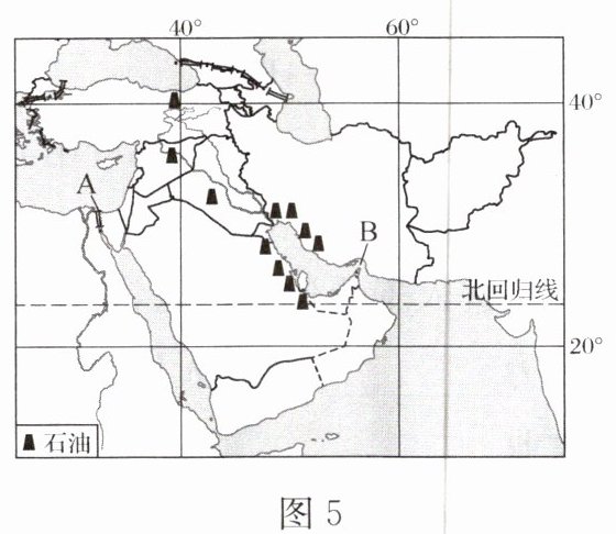 11. 西亚历来动荡不安,地区局势极不稳定,是世界关注的热点地区,进入2024年以后以色列和巴勒斯坦等地区冲突不断。读图5,完成下列各题。