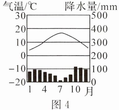 油橄榄具有喜温耐旱的特性,根系发达,叶面较硬且具有蜡质层。读“油橄榄景观图”(图3)和“油橄榄生长地气温曲线和降水量柱状图”(图4),完成6~7题。