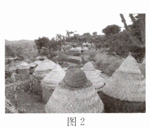 苏库尔文化景观(图 2)是非洲尼日利亚东北部的一处世界遗产,该遗产地位于海拔 1045 米的石质山丘上(10°45'N,13°34'E),年平均气温约 28℃,干湿季分明(图 3 为当地气候资料图)。此遗产以传统村落、梯田等文化遗存为特色一直传承至今。为据此回答 4~6 题。