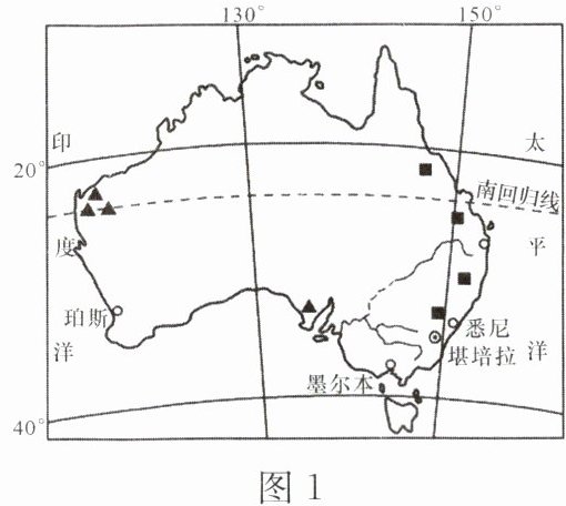 1. 读图1,下列关于澳大利亚的说法,正确的是( )