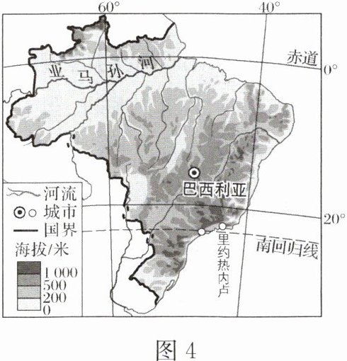 11. 为了解区域自然地理特征并认识自然地理环境对人类活动的影响,某地理小组赴巴西进行地理考察。请你根据提供给地理小组的相关信息,结合所学知识,完成下列各题。