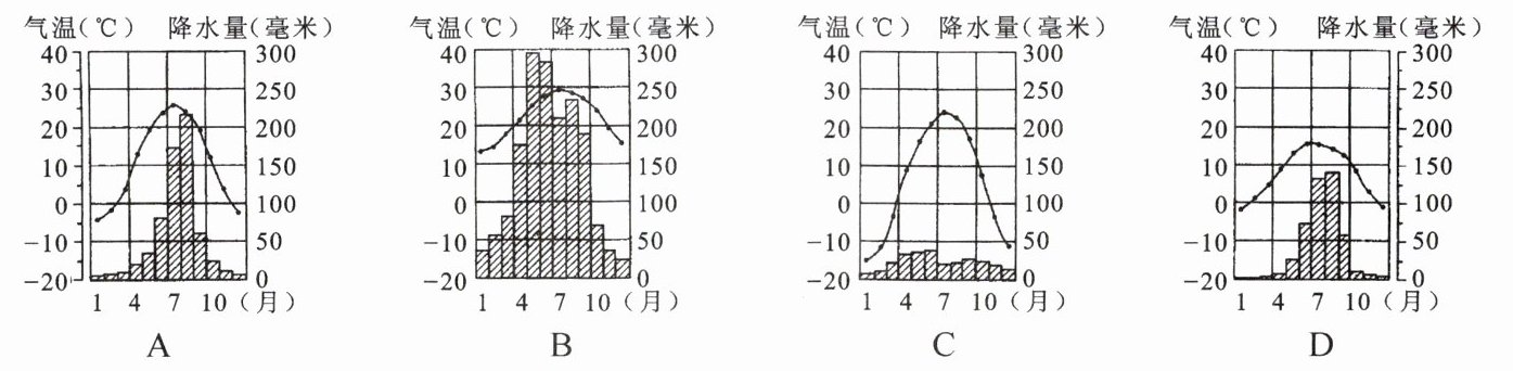20. 下列四幅图分别代表了不同的地理区域,其中反映北方地区的是()