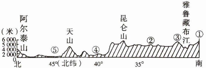 22. 读“我国西部沿东经 $97^{\circ}30'$ 的地形剖面图”,回答下列问题。
