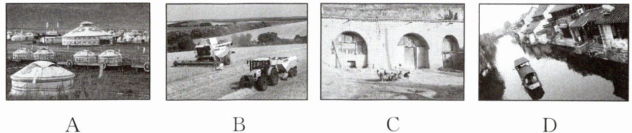(2)B是婷婷拍摄的我国北方地区收割小麦的景观,它反映当地的耕地类型以____为主。
