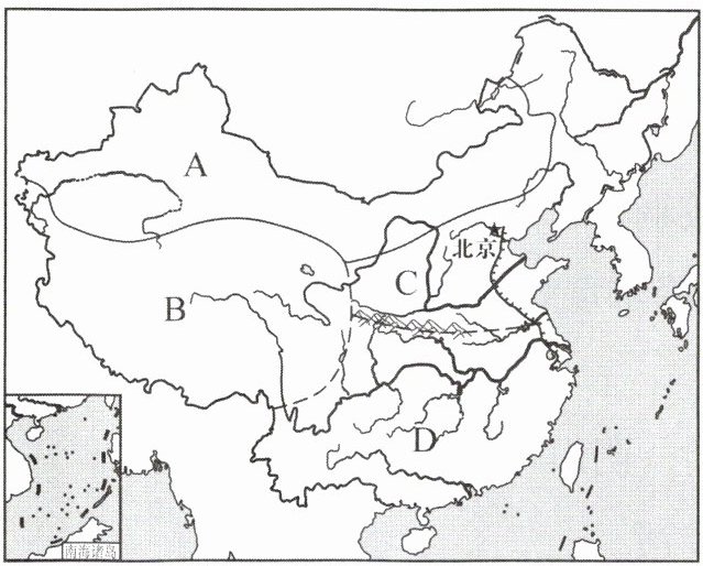 (1)A 西北地区;B 青藏地区;C 北方地区;D 南方地区