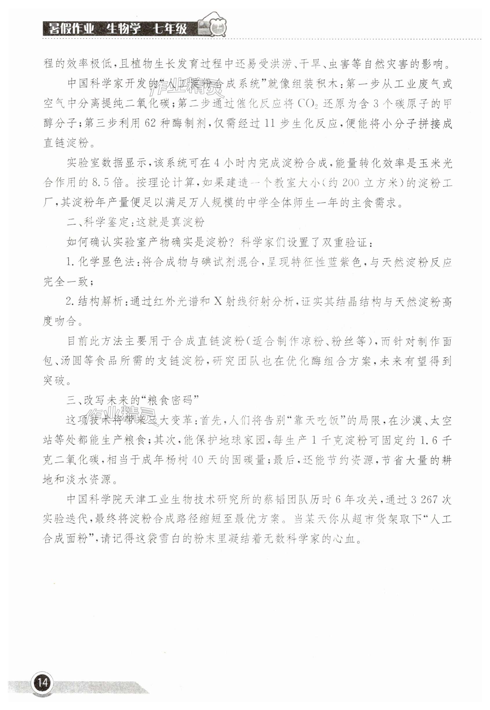 2025年长江作业本暑假作业湖北教育出版社七年级生物