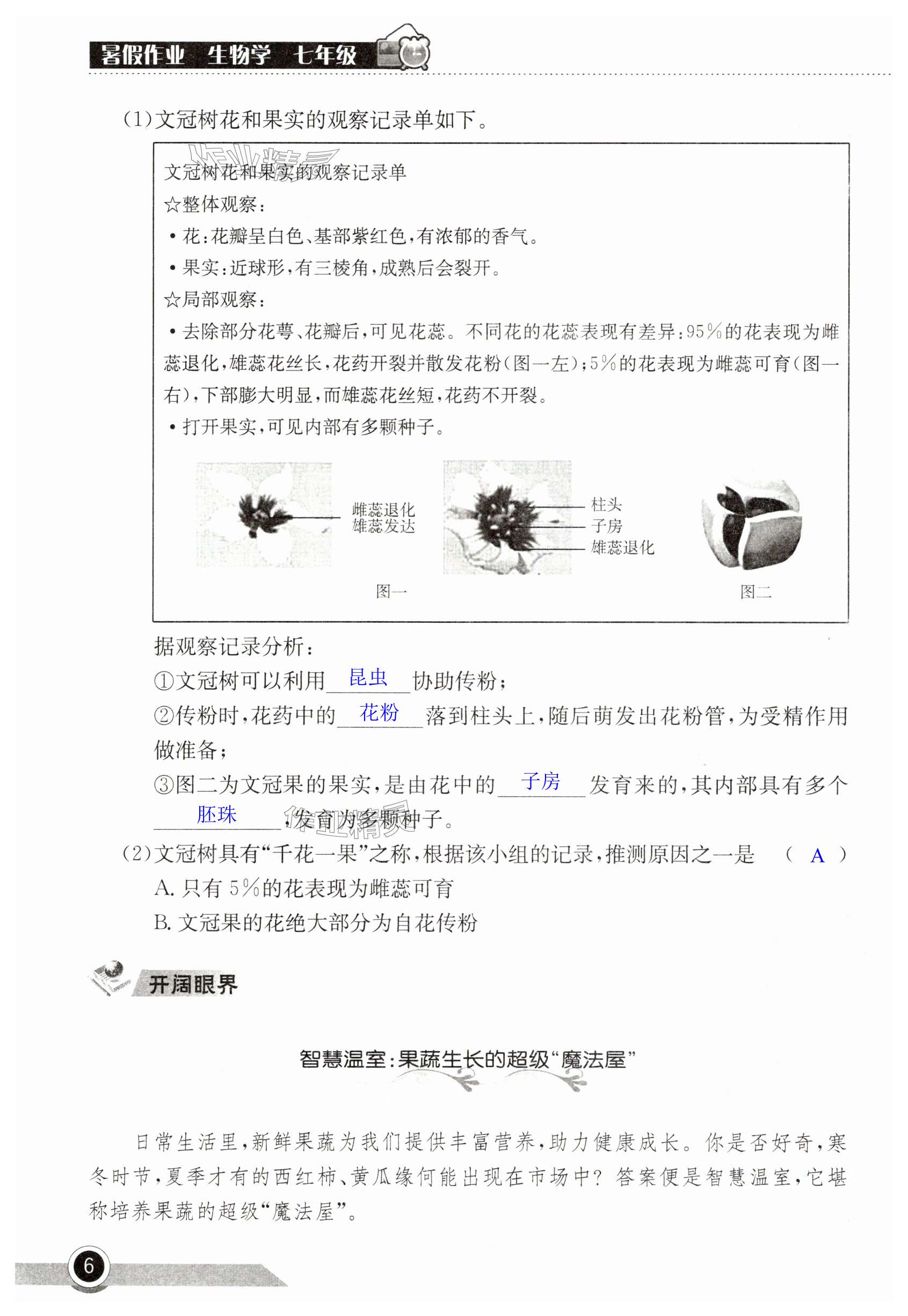 2025年长江作业本暑假作业湖北教育出版社七年级生物