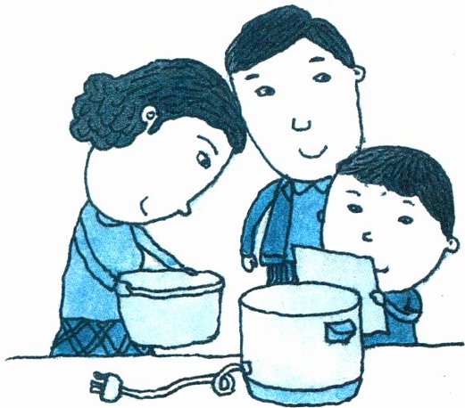 爸爸买来电饭锅,小敏看了看说明书,告诉妈妈:“这是保温式自动电饭锅,除了做饭,还可以熬汤、煮粥。”小敏妈妈听了,说:“我来试一试。”说着,就取出内锅要去淘米。小敏连忙阻止说:“说明书的第一点告诉我们,不宜( )用内锅淘米,以免变形而影响使用效果。”妈妈听了,就换了口铝锅去淘米,然后把米倒进内锅,问:“小敏,放多少水,也有说明吗?”小敏看了“使用说明”的第二点,说:“有,煮饭的米与水的比例,以1比1.5为宜( )。”妈妈就照着小敏说的放好水,把内锅放进电饭锅里。
