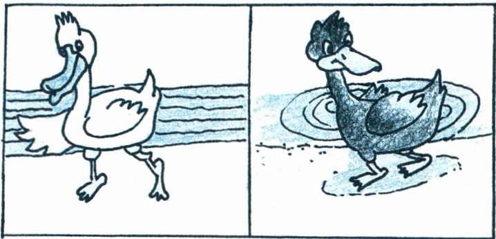 下面是一幅鸭子上岸图。请你仔细看一看,想一想:是黑鸭先上岸,还是白鸭先上岸? 写出你的理由。(答案在本书中找)