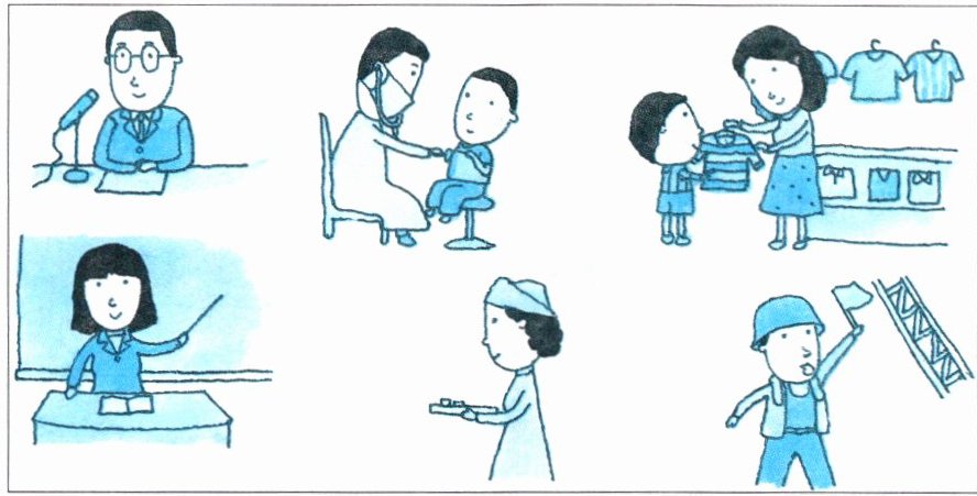 John's father is a headmaster (校长). His mother is a teacher. Sam's uncle works in a hospital(医院). He is a doctor. May's aunt also works in a hospital. She is a nurse. Tom's sister is a salesgirl(营业员). She sells(销售) clothes in a shop. His father works in a factory(工厂). He is a worker(工人).