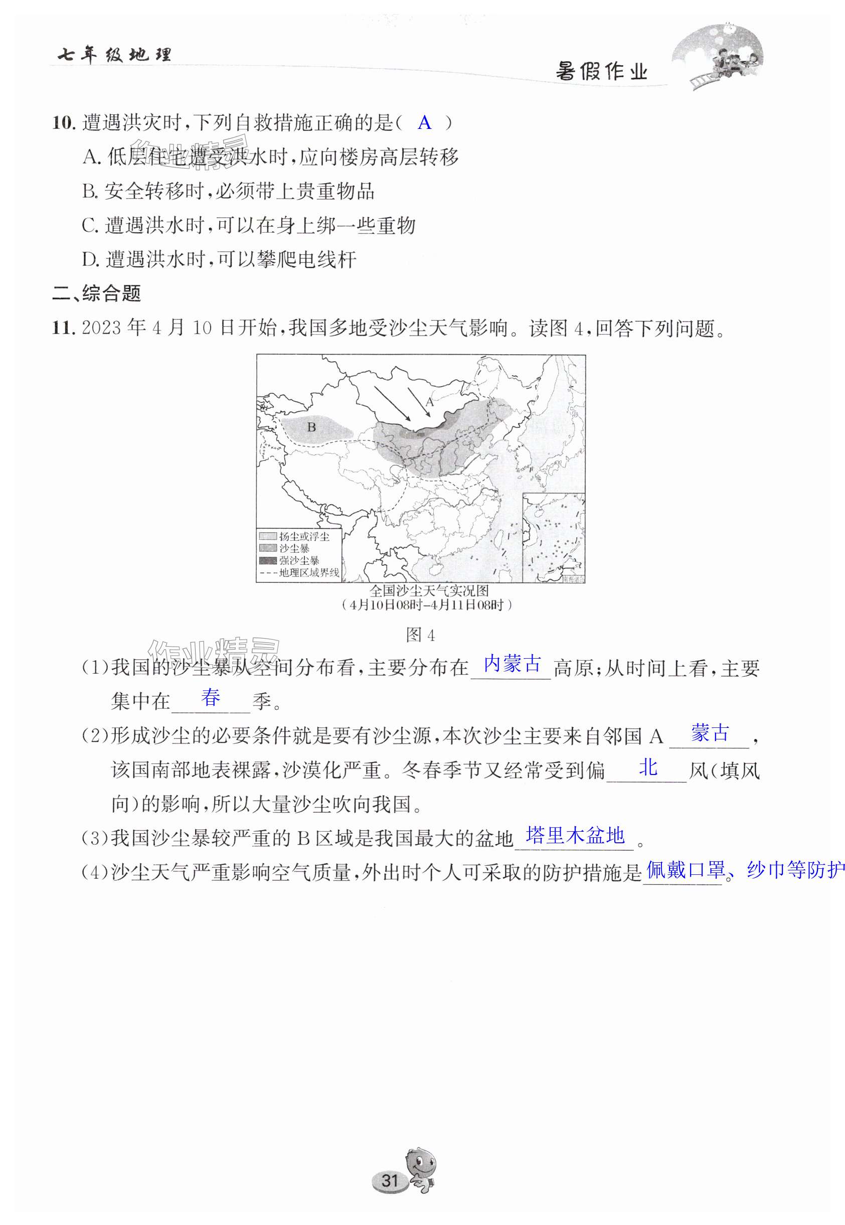 注:目前有些书本章节名称可能整理的还不是很完善,但都是按照顺序排列的,请同学们按照顺序仔细查找。练习册 2025年暑假作业长江出版社七年级地理中图版 答案主要是用来给同学们做完题方便对答案用的,请勿直接抄袭。