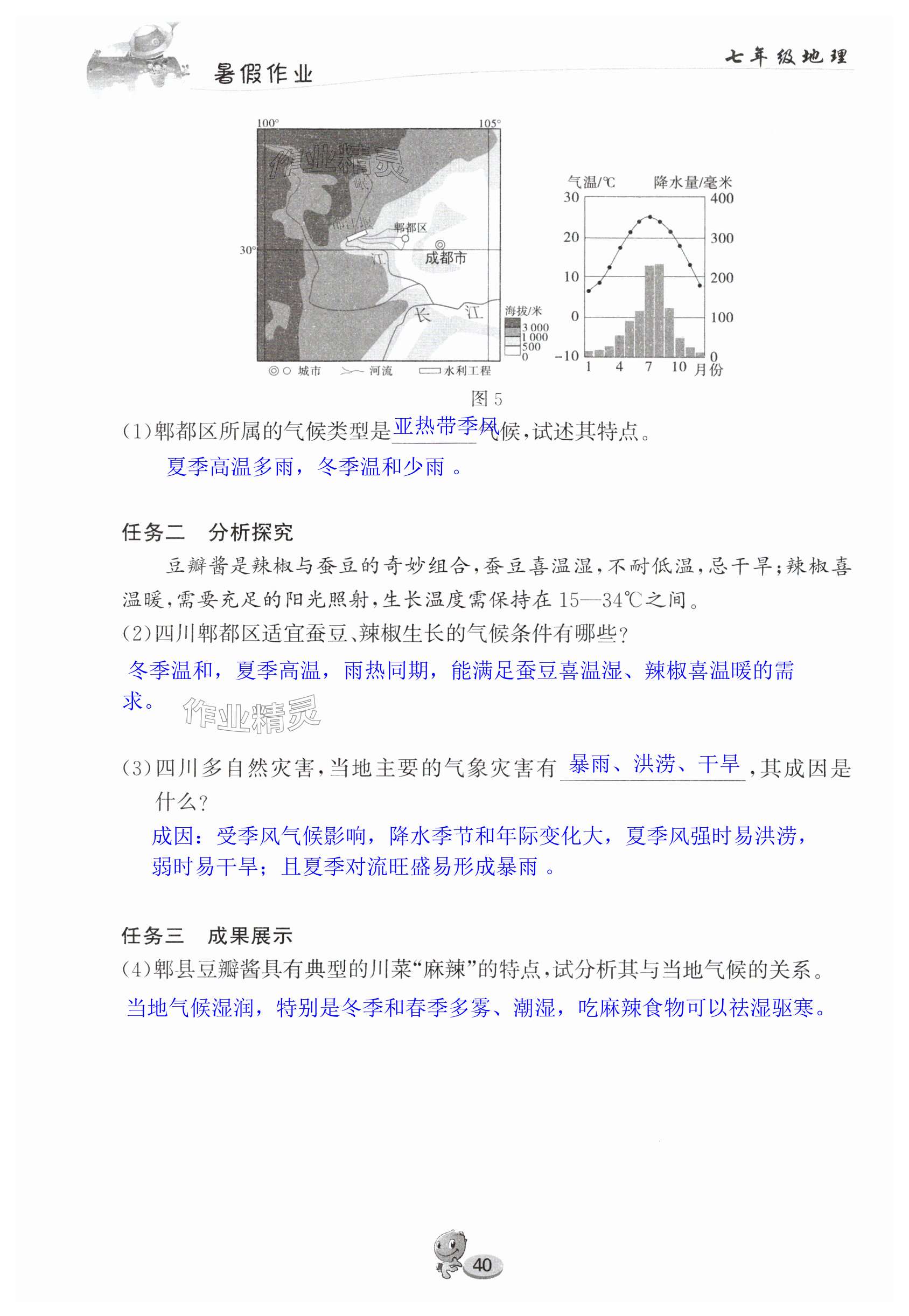 注:目前有些书本章节名称可能整理的还不是很完善,但都是按照顺序排列的,请同学们按照顺序仔细查找。练习册 2025年暑假作业长江出版社七年级地理中图版 答案主要是用来给同学们做完题方便对答案用的,请勿直接抄袭。