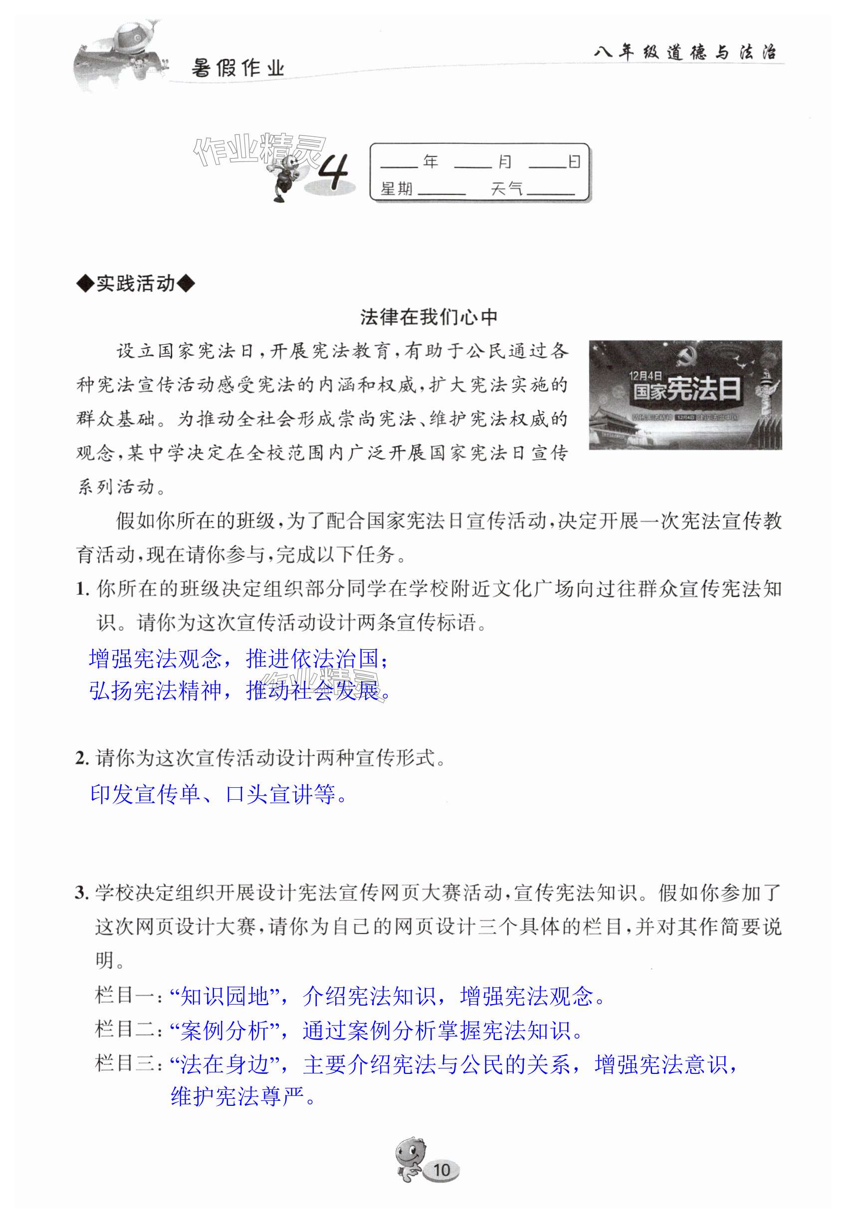 注:目前有些书本章节名称可能整理的还不是很完善,但都是按照顺序排列的,请同学们按照顺序仔细查找。练习册 2025年暑假作业长江出版社八年级道德与法治人教版 答案主要是用来给同学们做完题方便对答案用的,请勿直接抄袭。