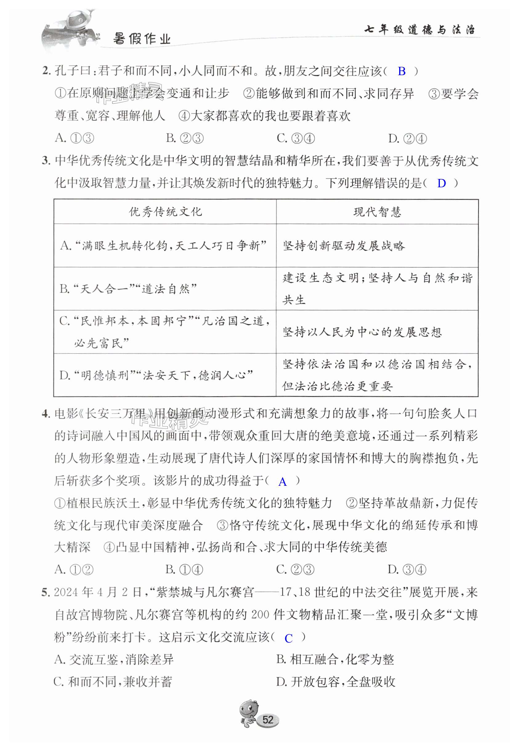 注:目前有些书本章节名称可能整理的还不是很完善,但都是按照顺序排列的,请同学们按照顺序仔细查找。练习册 2025年暑假作业长江出版社七年级道德与法治 答案主要是用来给同学们做完题方便对答案用的,请勿直接抄袭。