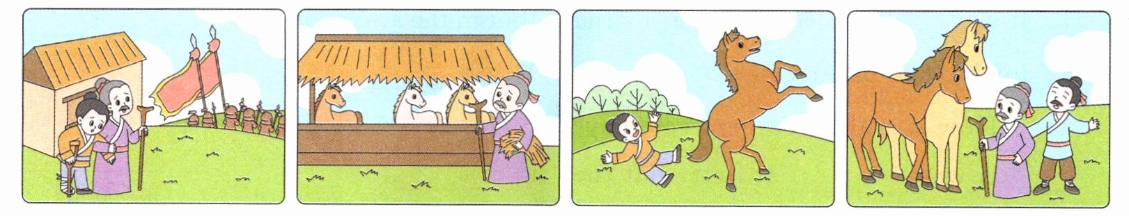 In the old times, there was an old man. He was Saiweng. He always thought differently from other people. One day, one of his horses went out and didn't come back. His neighbours felt sorry for him. However, he said, “Losing a horse is a bad thing, but maybe it will become a good thing.”